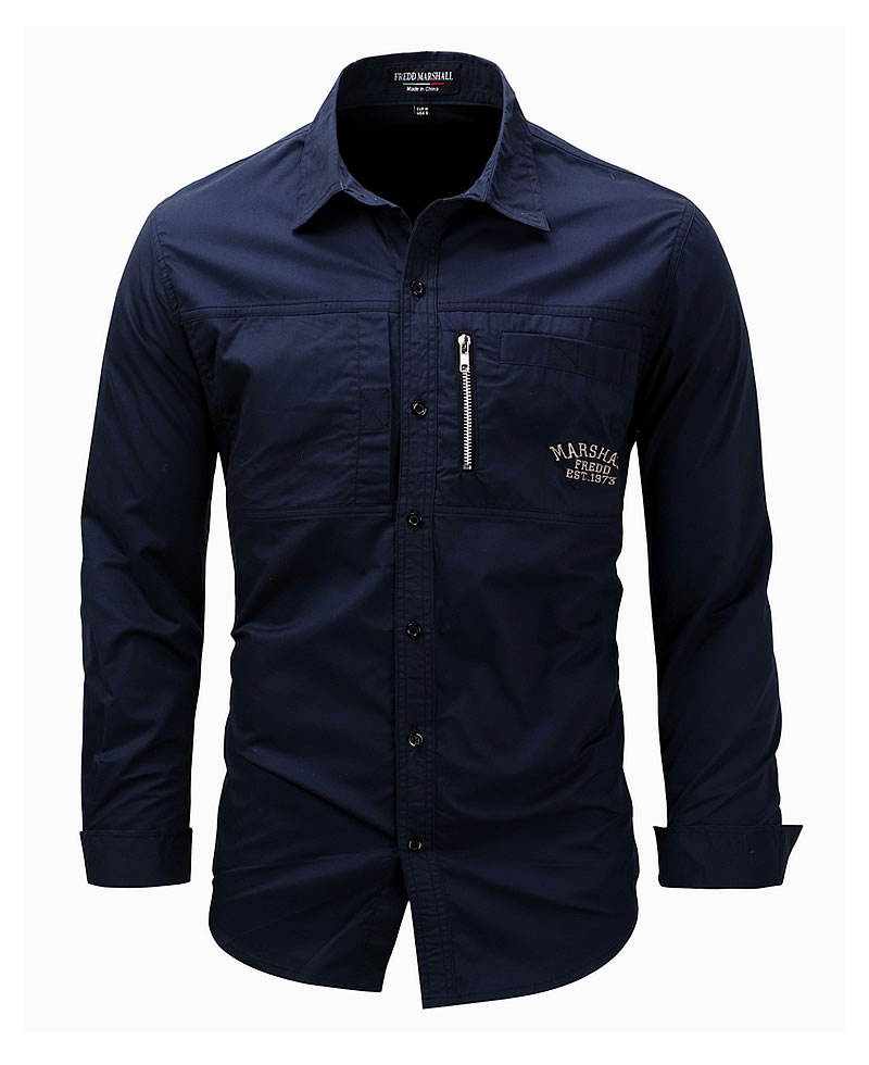 Fredd Marshall Men's Casual Zip Long-Sleeved Cotton Shirt - Navy Blue